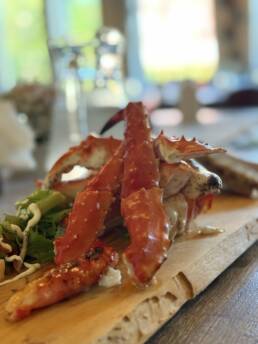 Frisch gefangener Fisch, norwegische Waffeln mit Brunost (braunem Käse), King-Crab, Zimtschnecken